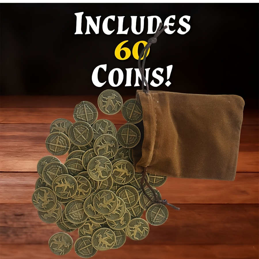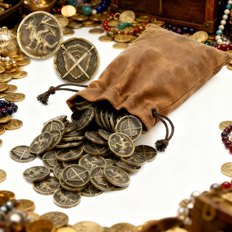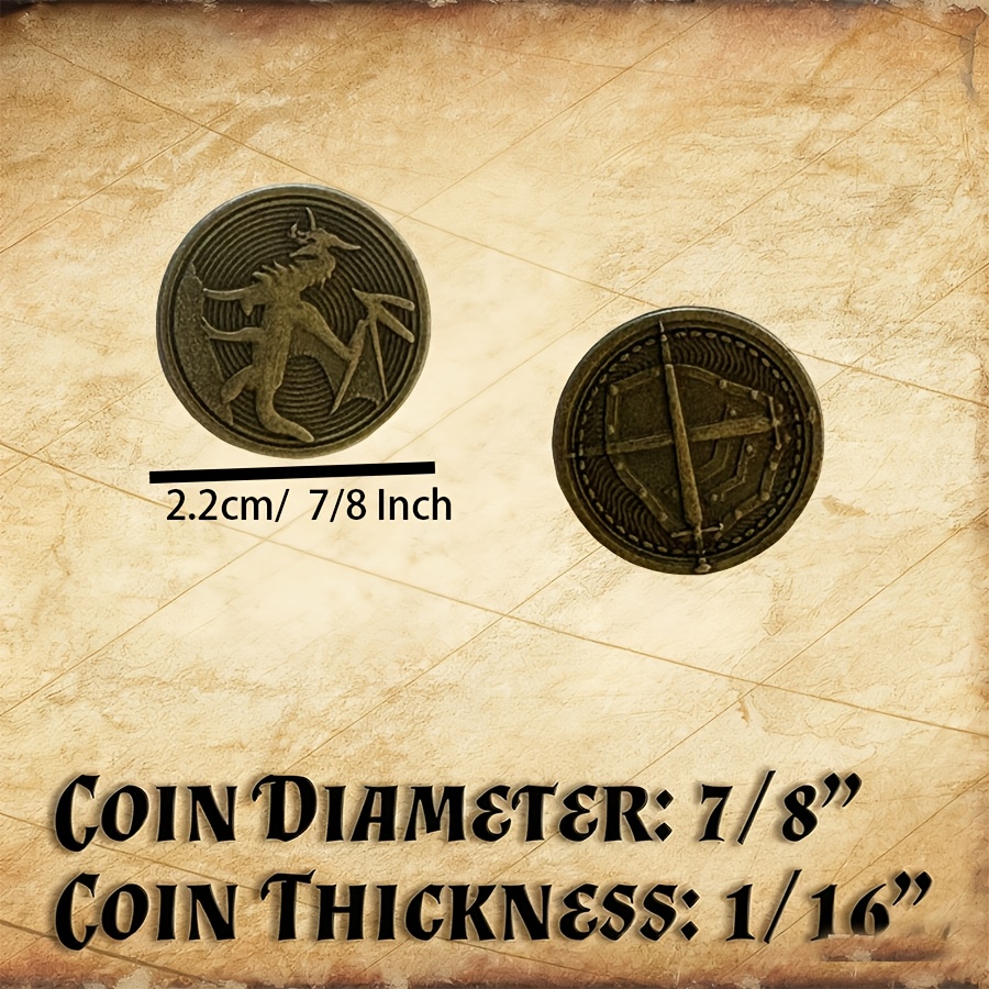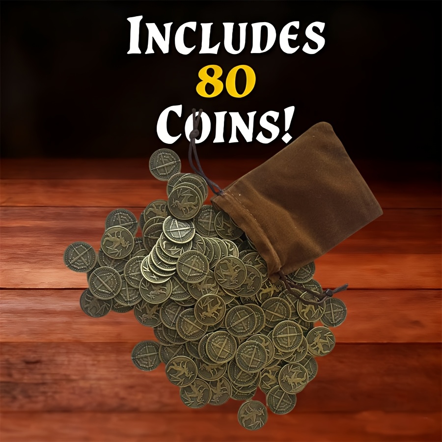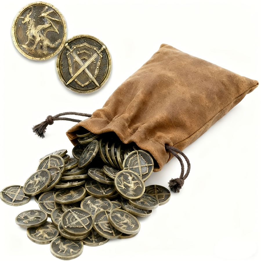 20/40/60/80 Carnival Halloween Metal Coins And Bags | Suitable For Desktop Rpg Board Games, Bronze Coins Carved With Dragons, Swords, And Shields, Metal Tokens For Board Games