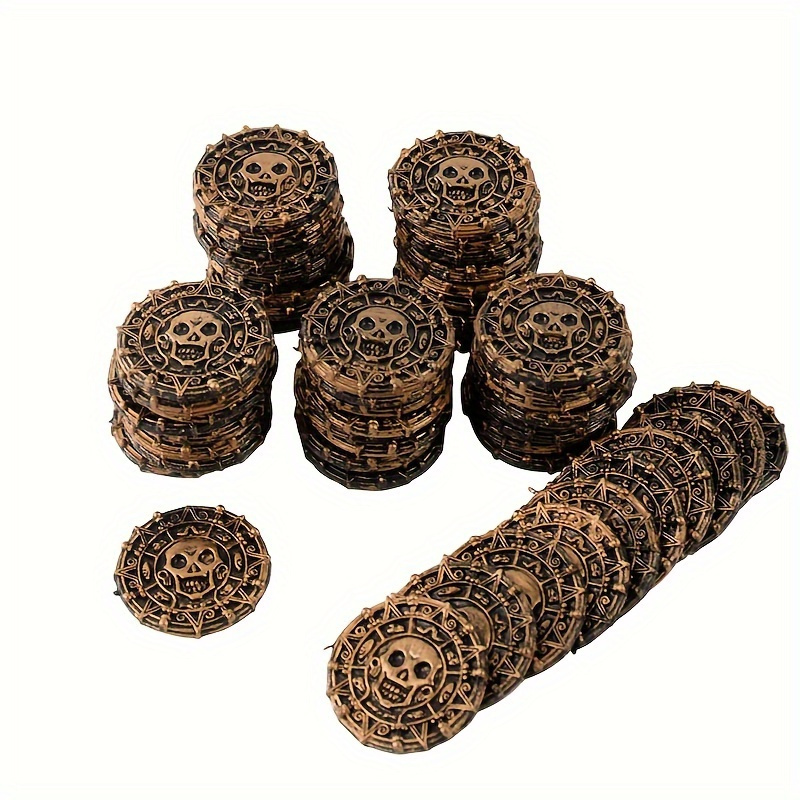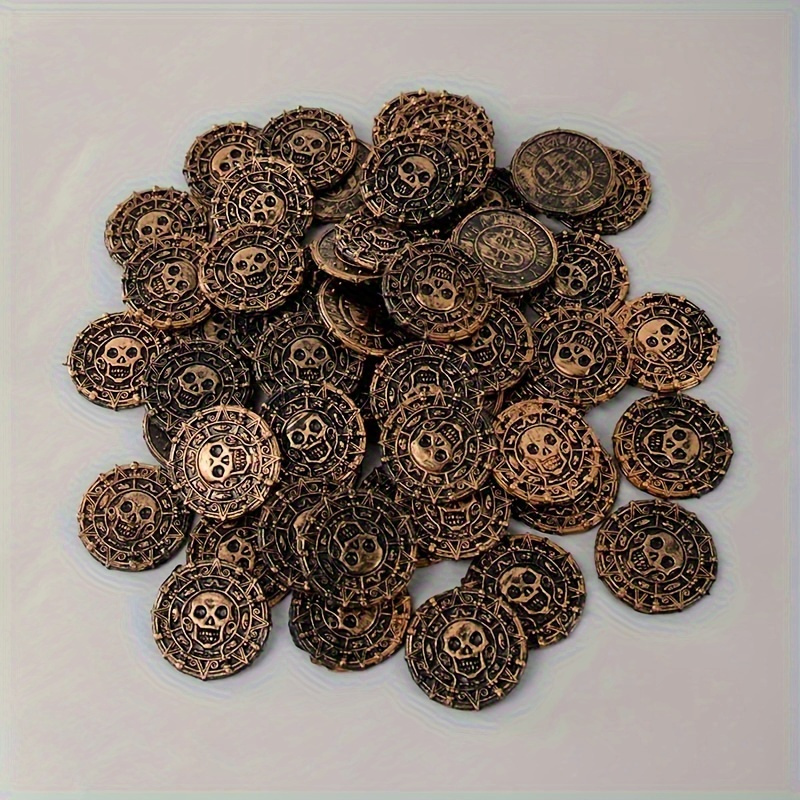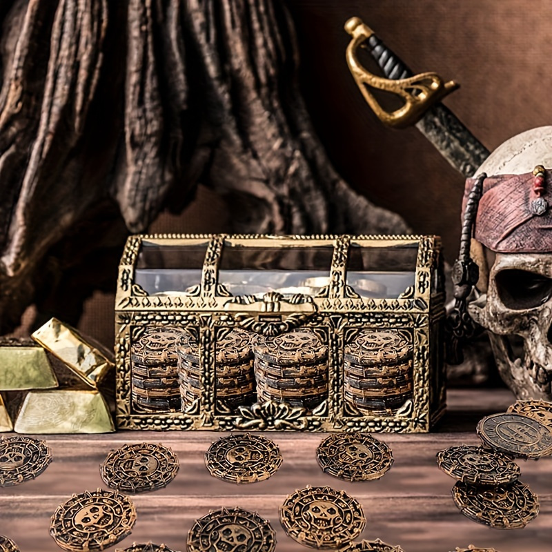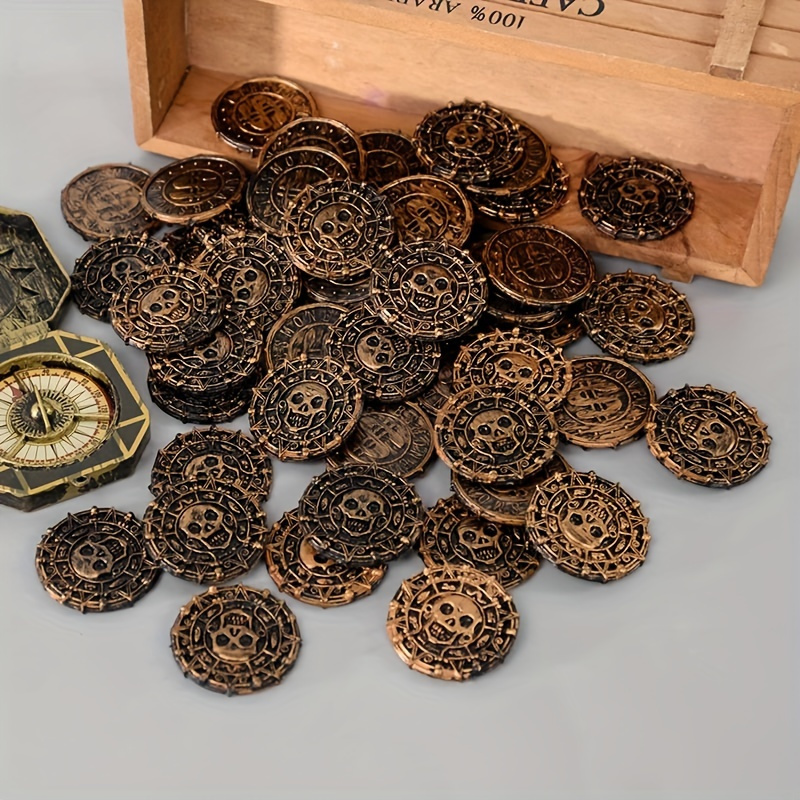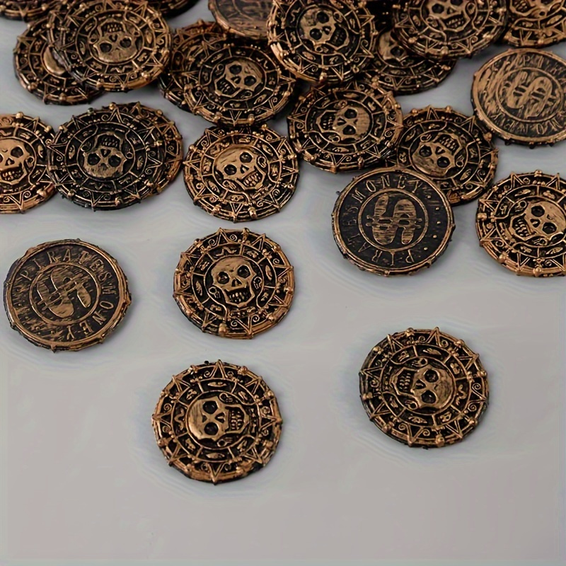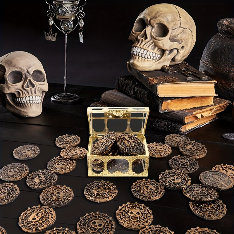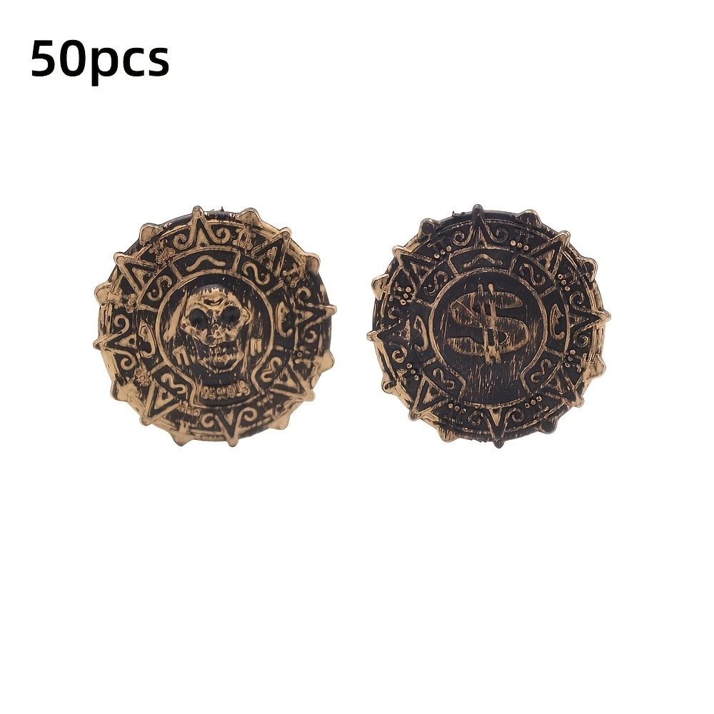 50pcs Plastic Pirate Treasure Set - Perfect for Party Favors, Halloween Decorations, and Pirate-Themed Events - Non-Electric Golden Coin Props