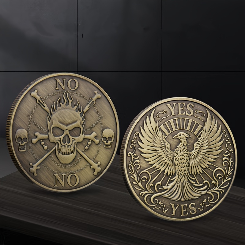• 1pc YES/NO Commemorative Coin, Phoenix/Skeleton Decision-Making Coin for Play